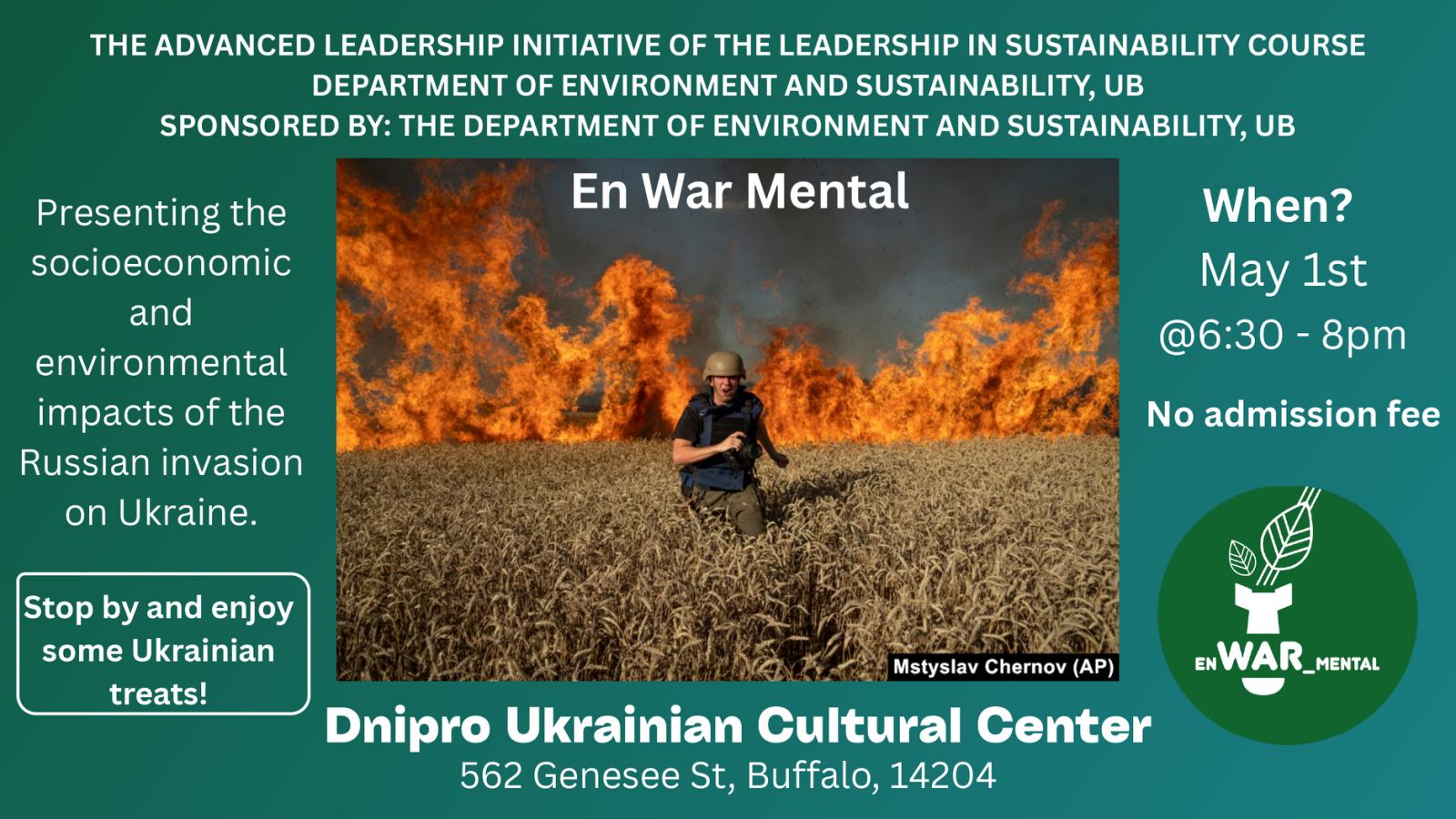 On Friday May 1st from 6:30pm to 8:00pm - Join us for “En War Mental” - an engaging conversation on the socioeconomic and environmental impacts of Russia’s invasion of Ukraine. Admission is free, and guests are welcome to stop by, learn more, and enjoy Ukrainian treats.